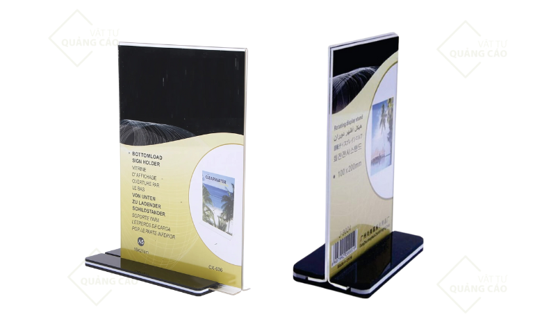 Ngoài ra, menu để bàn mica này còn có tính năng chống nước, chống bám bụi và dễ dàng vệ sinh. Giúp giữ gìn nội dung in ấn bên trong luôn sạch sẽ và chuyên nghiệp. Điều đặc biệt là nội dung hiển thị có thể dễ dàng thay thế mà không làm hỏng hoặc ảnh hưởng đến sản phẩm. Mang lại sự tiện lợi và linh hoạt cho người sử dụng.