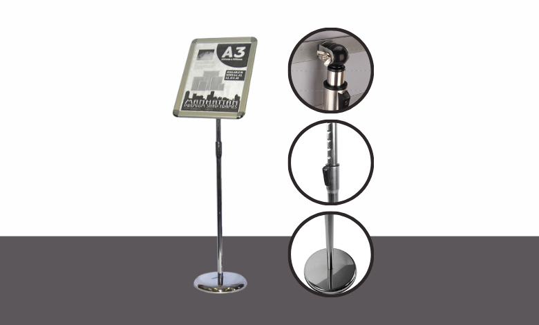 Ngoài ra standee này vừa có thể xoay ngang hoặc dòng khay đựng banner đều được. Thêm vào đó chúng còn có thể điều chỉnh chiều cao một cách linh hoạt. Có thể nói standee menu inox là sản phẩm không thể thiếu tại bất cứ không gian sự kiện nào trên thị trường hiện nay.